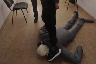 Мужчина нанёс лежащему на полу оппоненту несколько ударов ногой по голове.