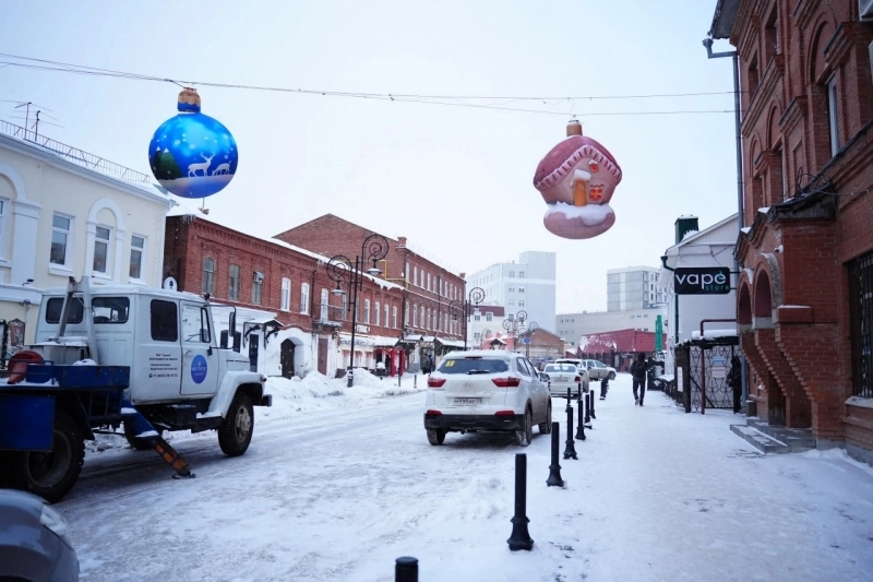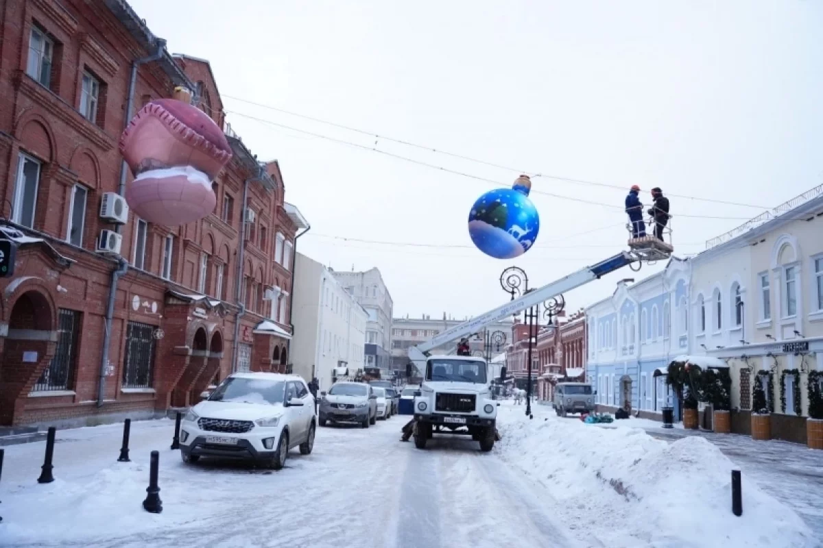 На улице Федерации монтируют новые подвесные фигуры. Как рассказали в администрации Ульяновска, этой зимой популярное у горожан пространство для отдыха украсят шесть надувных конструкций в виде новогодних игрушек в советском стиле: шишки, часов, ёлочного шара, пряничного домика, колокольчика и гриба. Монтажом арт-объектов занимаются рабочие МБУ «Городской центр по благоустройству и озеленению» и «Горсвет».