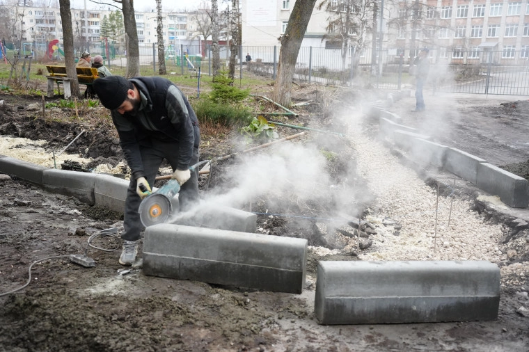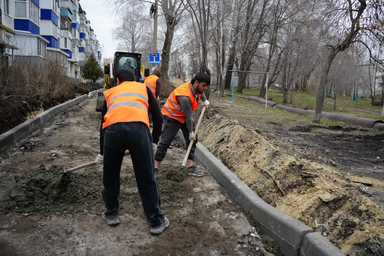 Двор дома №4 по улице Пушкинской (Железнодорожный район) начали приводить в порядок 1 апреля. В настоящее время здесь ставят новый борткамень взамен демонтированного, ремонтируют подходы к подъездам, внутридомовой проезд и бельевую площадку.