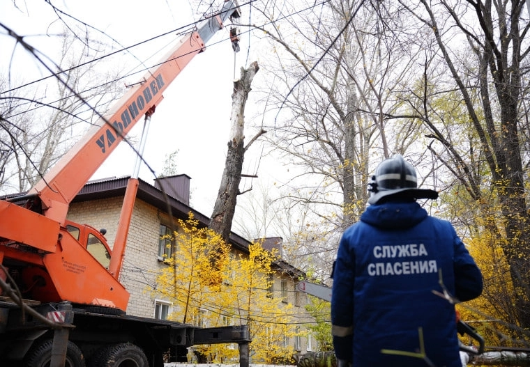 «С прошлого четверга аварийно наклонившийся тополь лежал на кровле двухэтажного дома. То есть управляющей компанией «Коммунальный стандарт» длительное время не принимались меры, - отметил глава администрации Засвияжского района Ринат Садыков. - Поэтому, чтобы снять аварийную ситуацию и устранить угрозу, были привлечены спасатели "Управления гражданской защиты", автокран и автовышка "Городского центра по благоустройству и озеленению"».