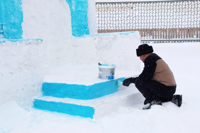 Высота снежной фигуры составила 4,5 метра, ширина и глубина — по 5 метров. Замок стал настоящим украшением территории ИК.