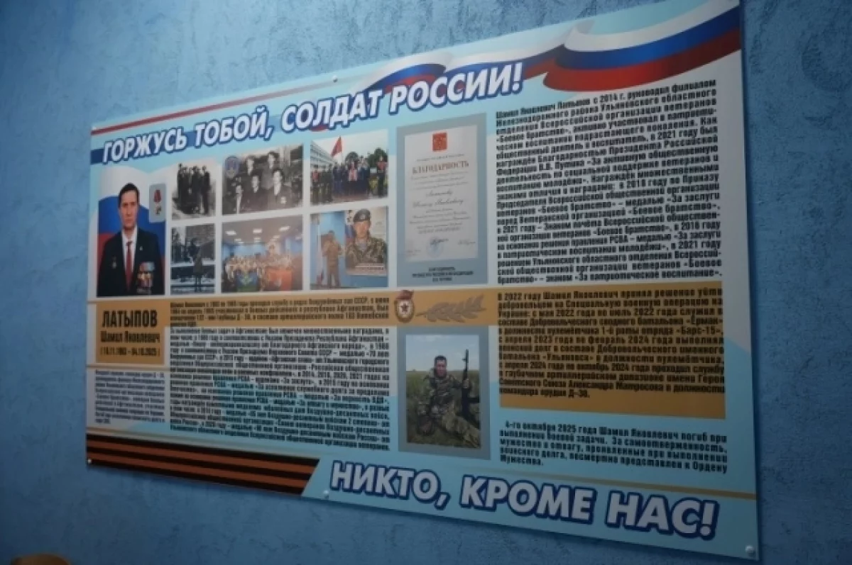 В ульяновской школе №48 открыли мемориальный стенд в честь участникам СВО Шамила Латыпова.
