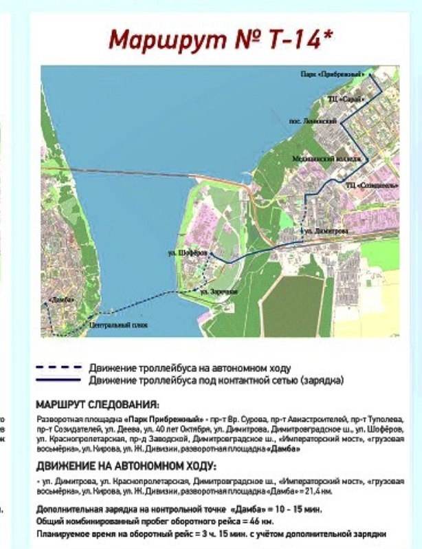 По информации МУП «Ульяновскэлектротранс», троллейбус «Горожанин» будет следовать от парка «Прибрежный» до Дамбы через Императорский мост. Желающих добраться до работы или учёбы на новом для города виде транспорта ждут на борту.