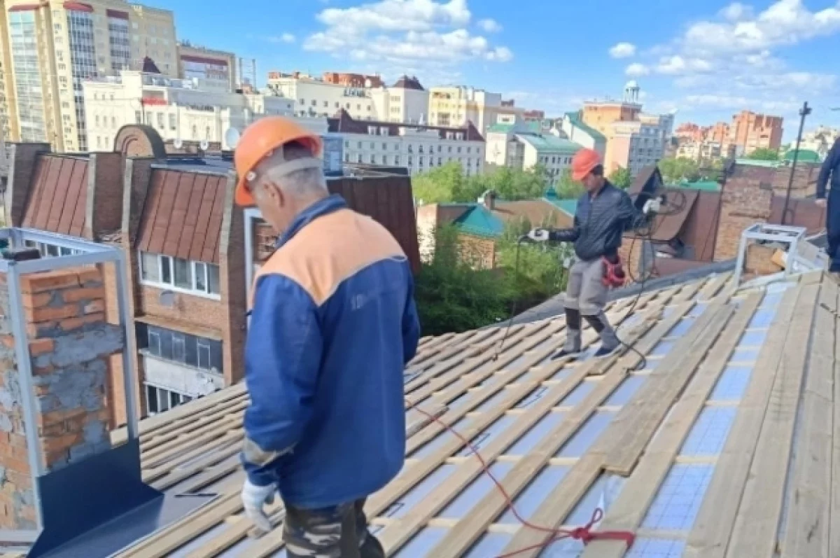 На Гончарова, 42 начинается ремонт купола, обновление разноуровневой скатной кровли на этом здании завершено.